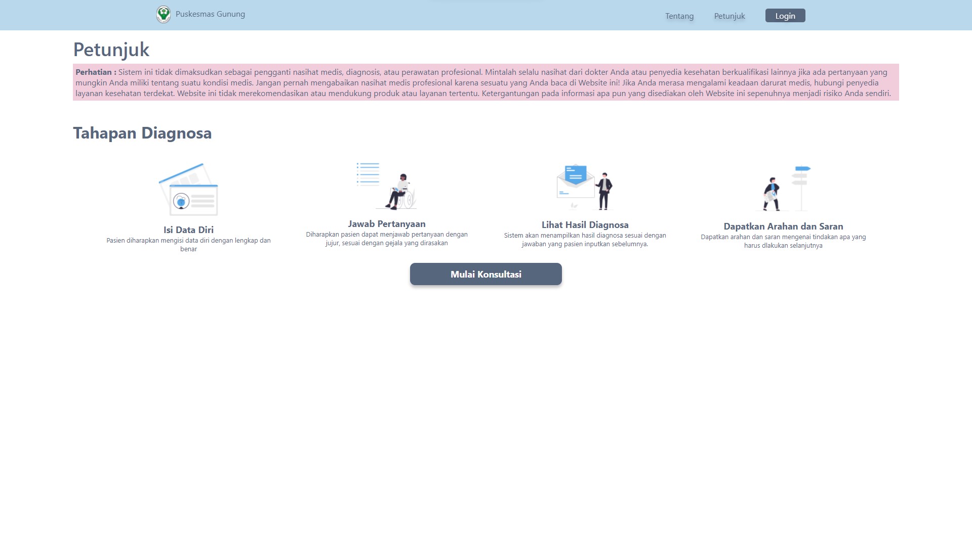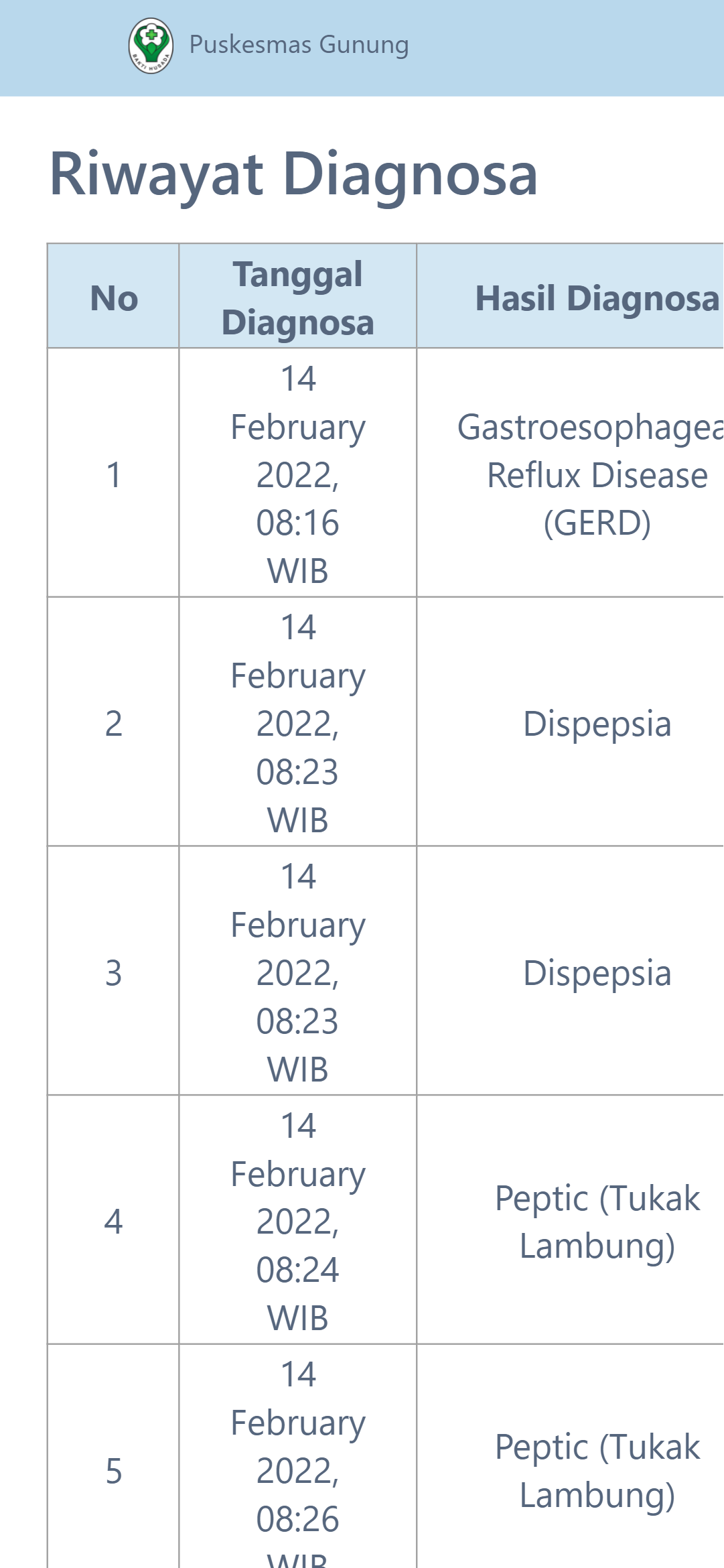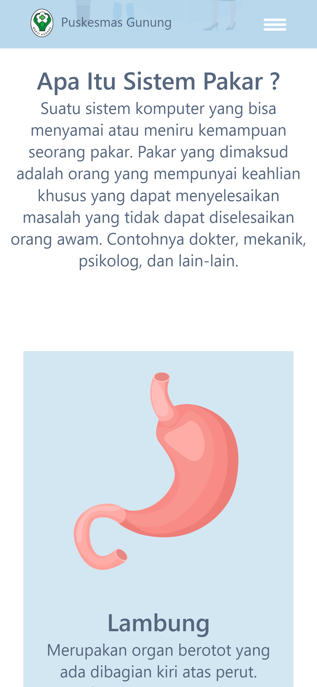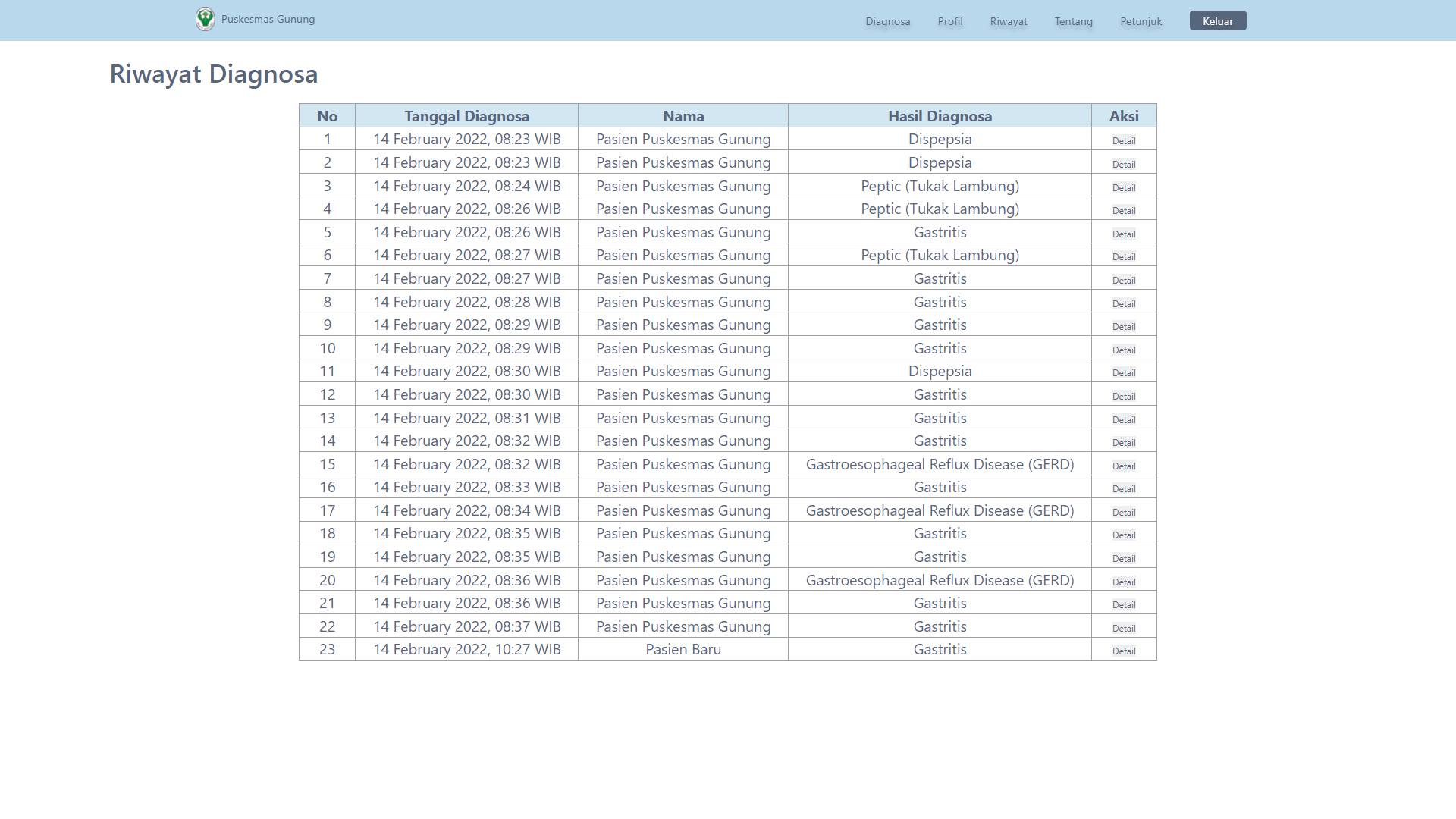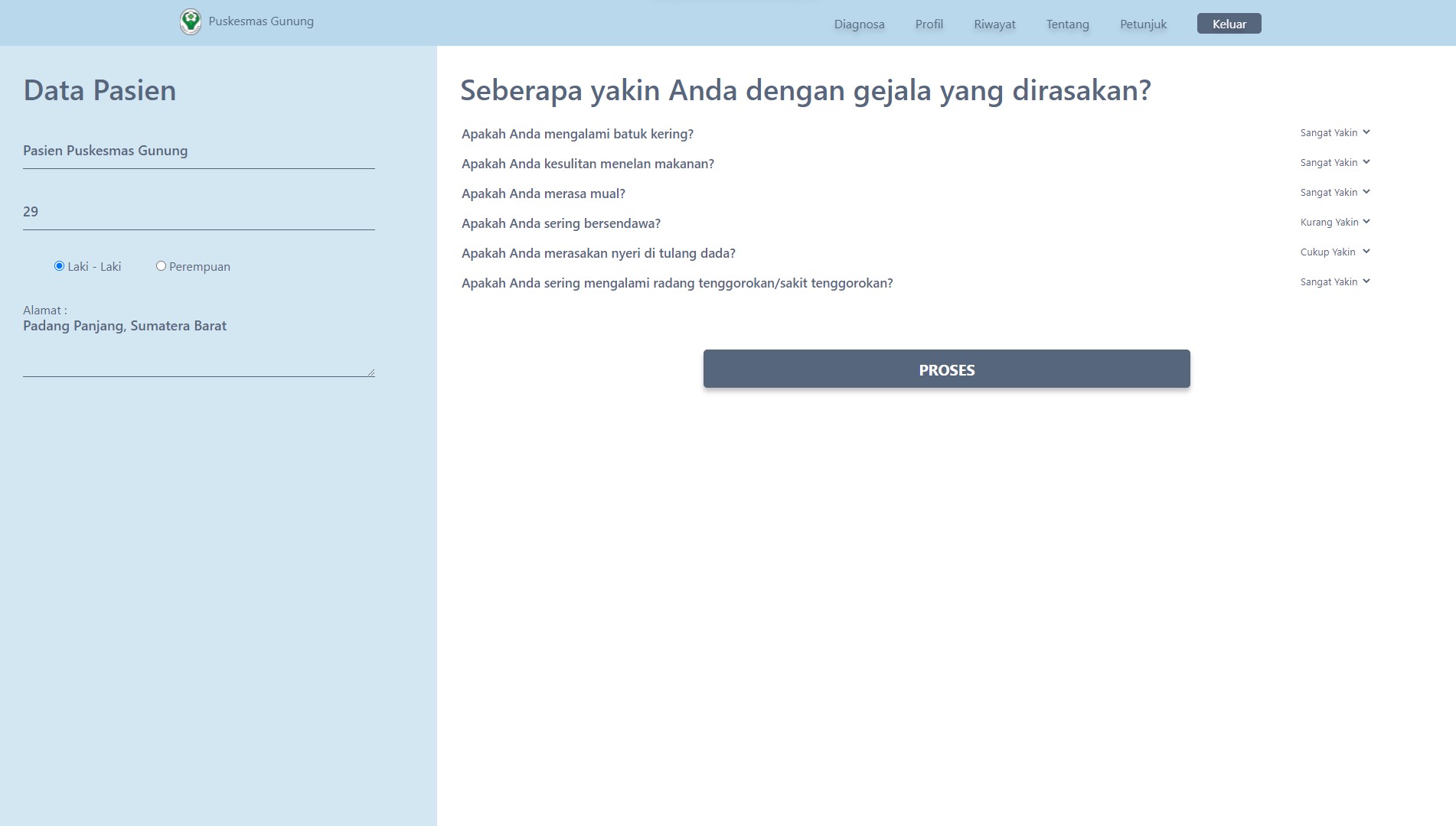 This expert system for diagnosing gastric diseases was created to help speed up and make it easier for health center doctors to diagnose patients, and was also created for the wider community to carry out initial diagnoses of the gastric diseases they suffer from