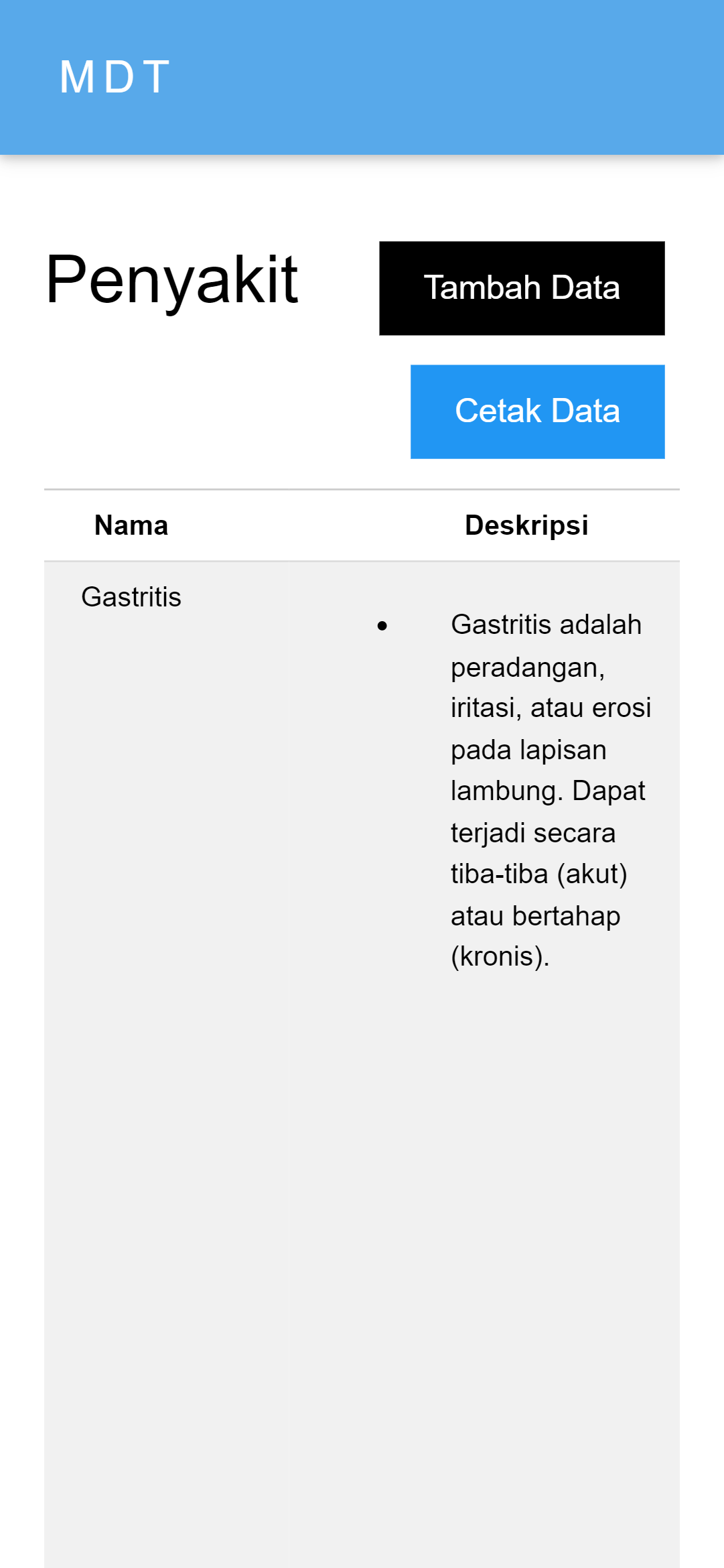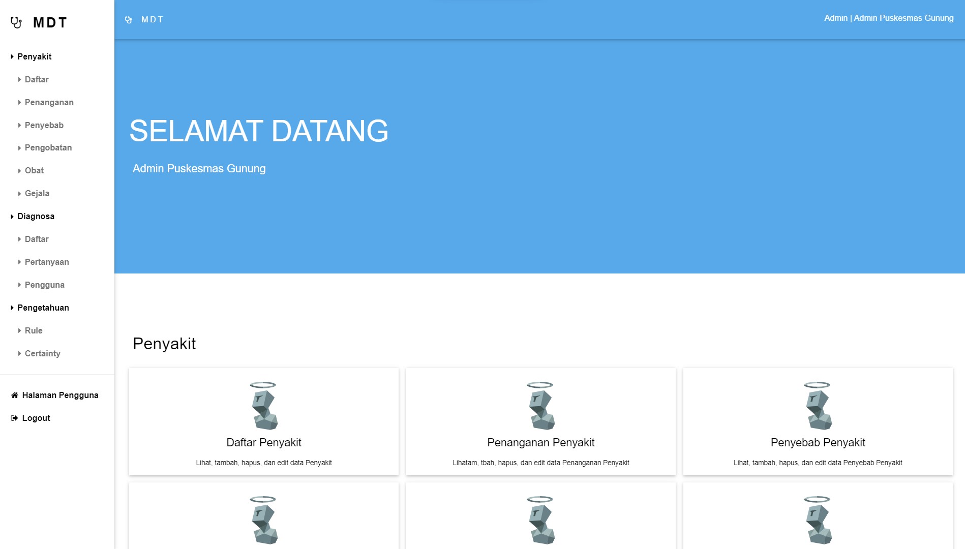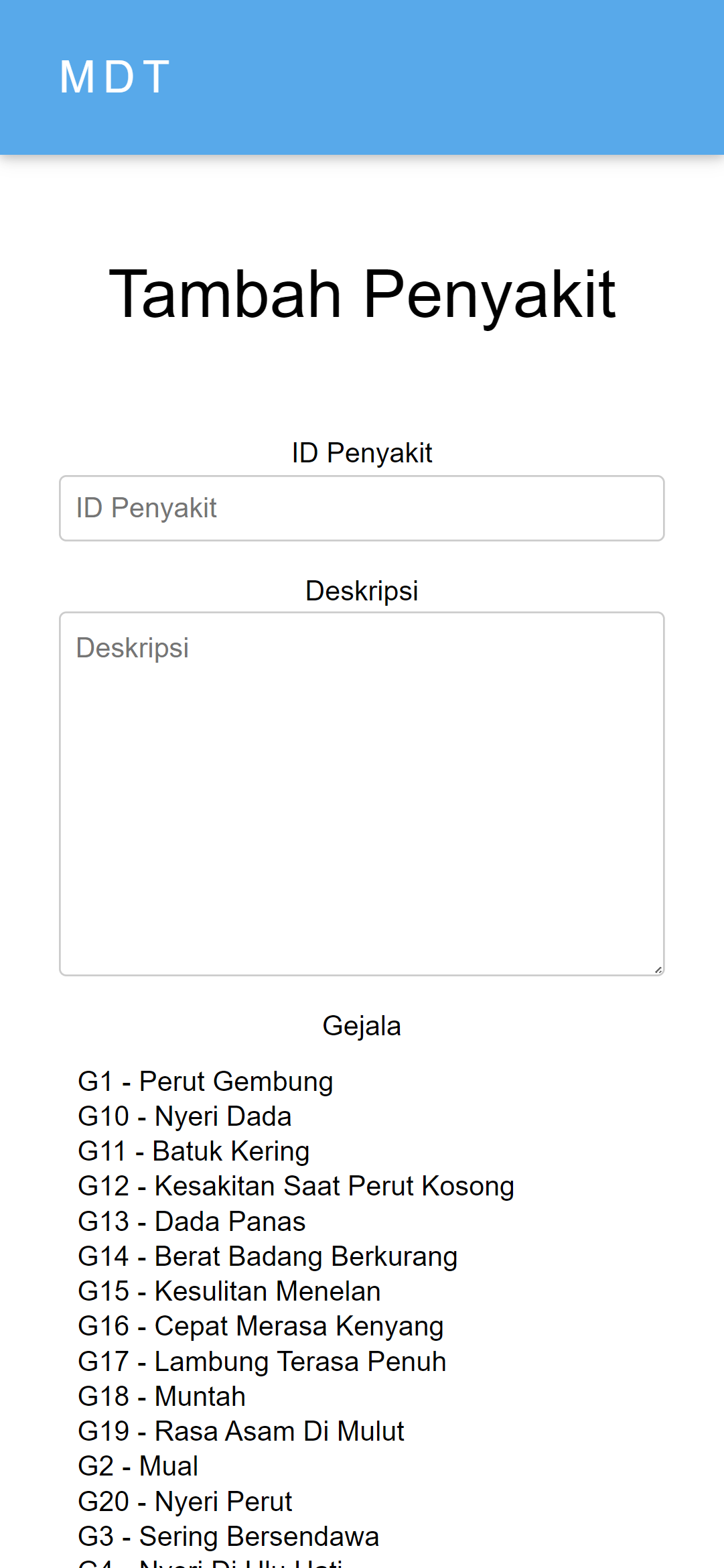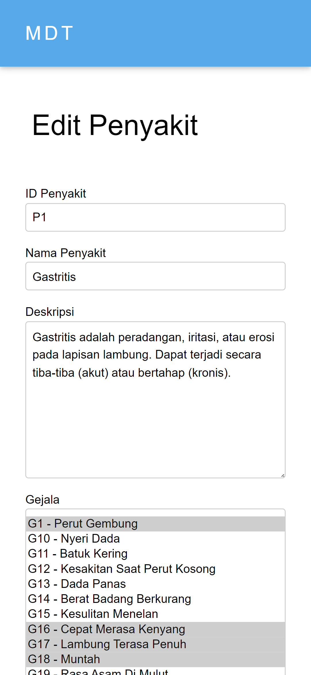 This expert system for diagnosing gastric diseases was created to help speed up and make it easier for health center doctors to diagnose patients, and was also created for the wider community to carry out initial diagnoses of the gastric diseases they suffer from