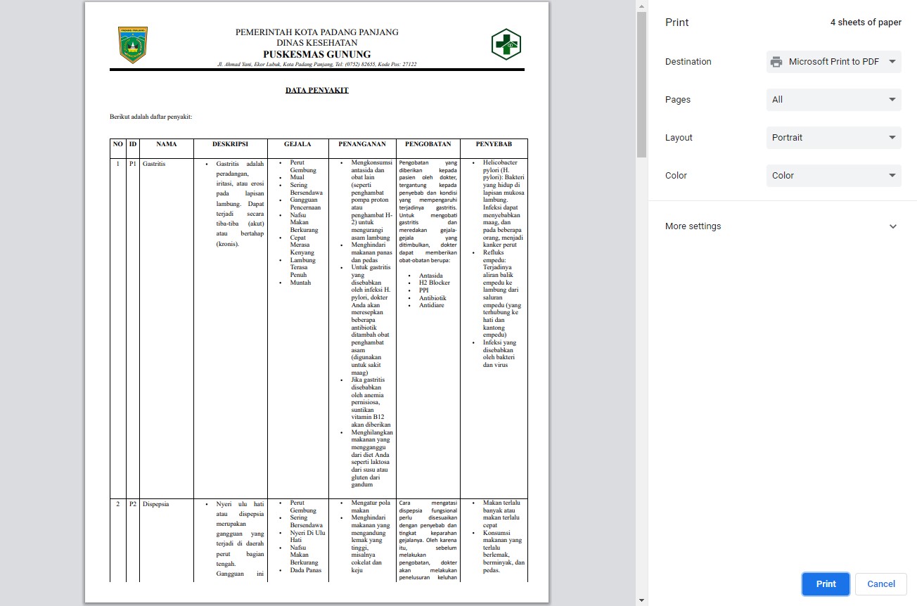 - Printable diagnosis result