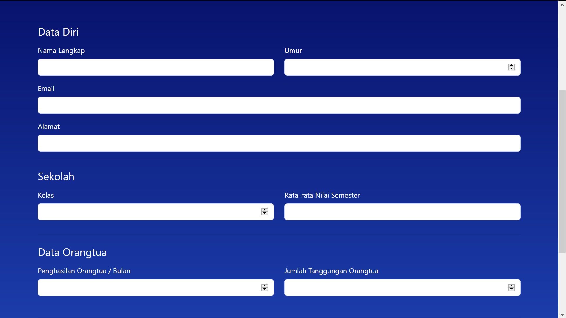 - Collect student information using form based input