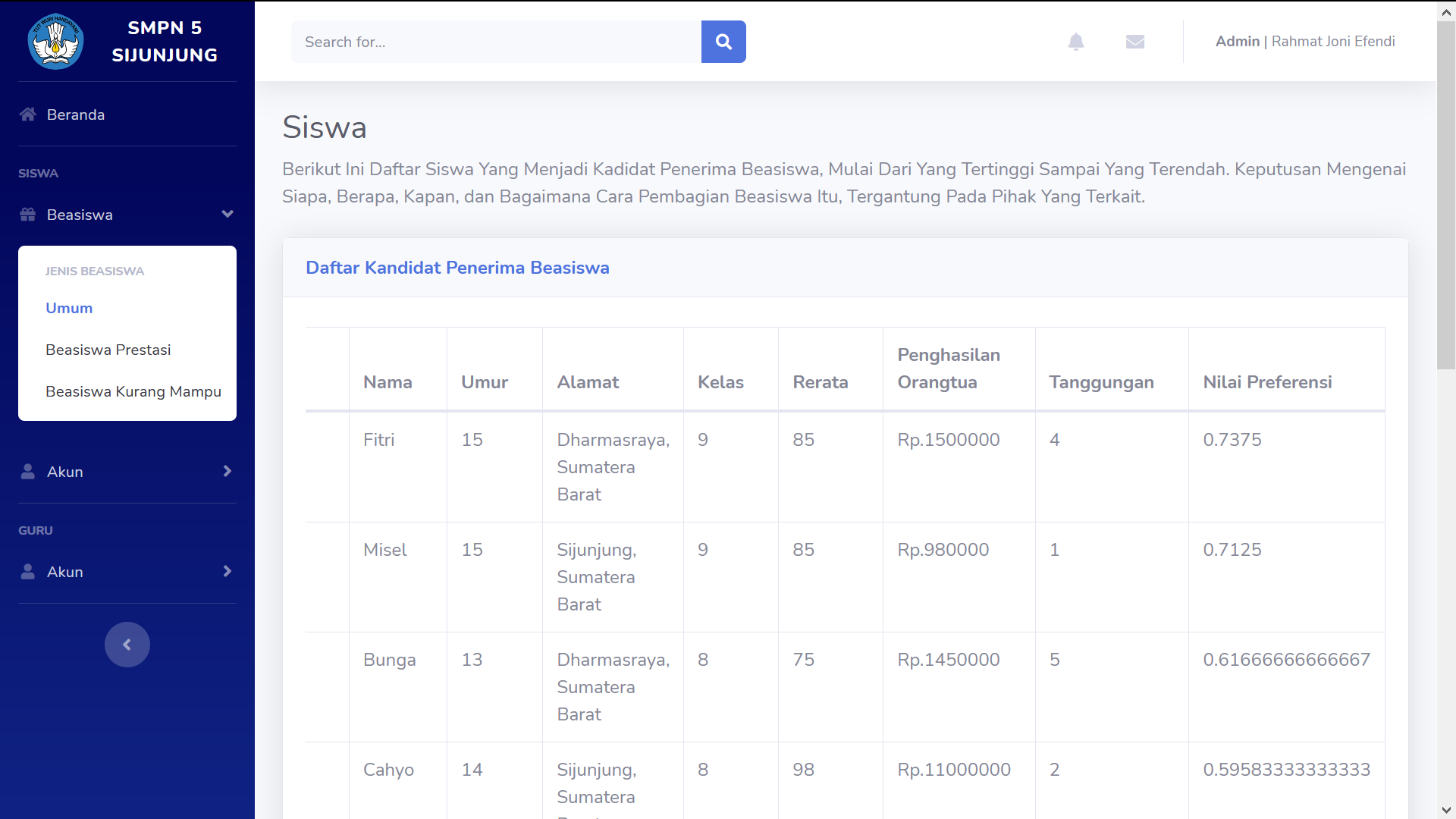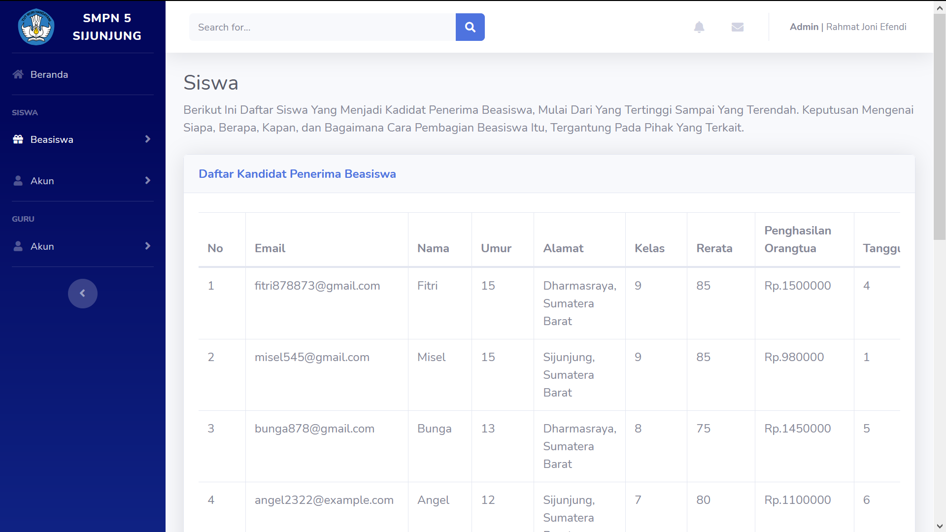 - Can decide candidate based on student family economy only